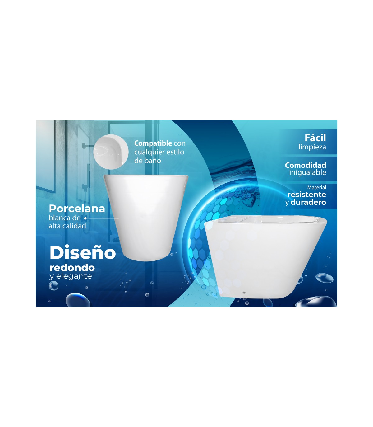 Su diseño redondo proporciona una estética suave y atemporal, ideal tanto para baños modernos como clásicos. La superficie vitrificada facilita la limpieza y garantiza una larga durabilidad.