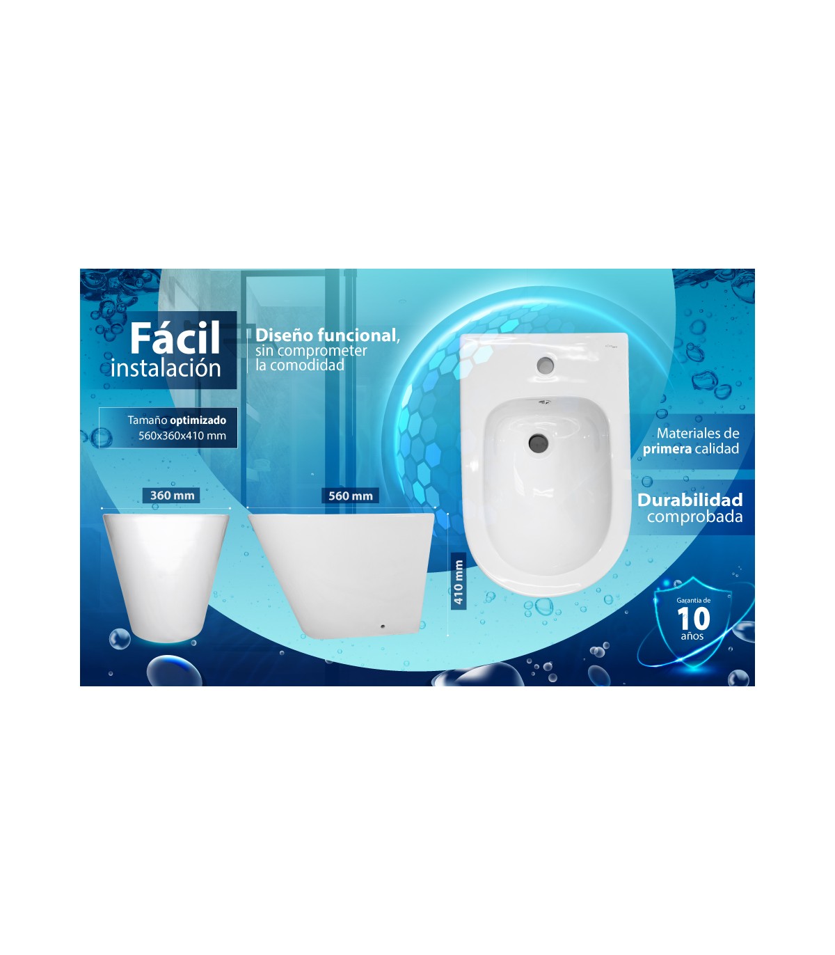 El bidé Venecia está diseñado para una instalación sencilla en el suelo y es compatible con la mayoría de griferías estándar del mercado, facilitando su integración en reformas o instalaciones nuevas.
