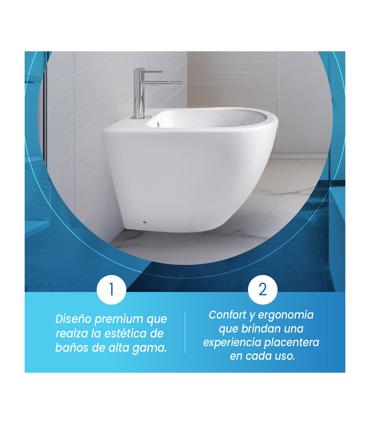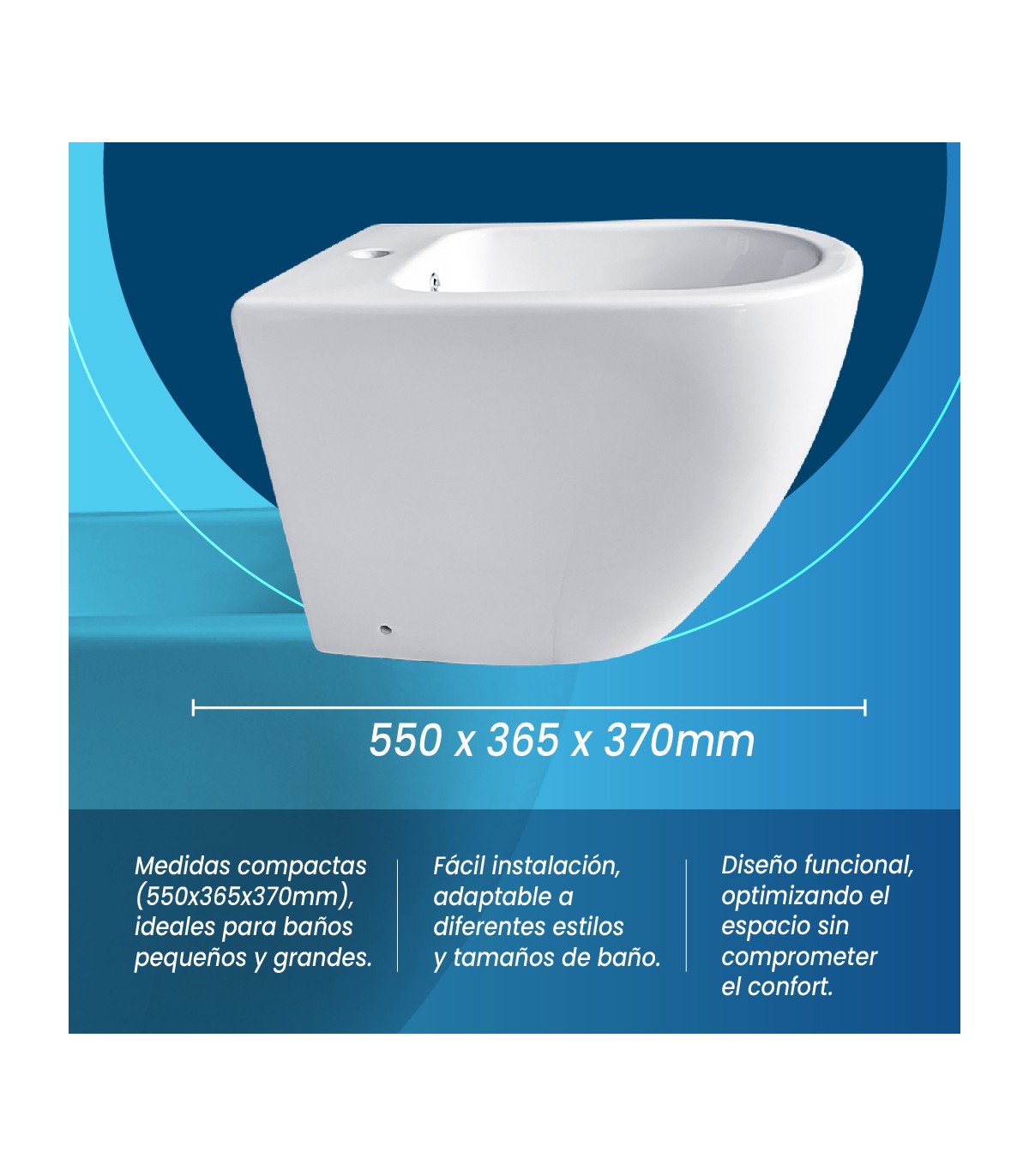 Su diseño redondeado y compacto lo convierte en una solución ideal para baños con espacio reducido, manteniendo la comodidad y la funcionalidad. La superficie vitrificada facilita la limpieza y garantiza una larga durabilidad.