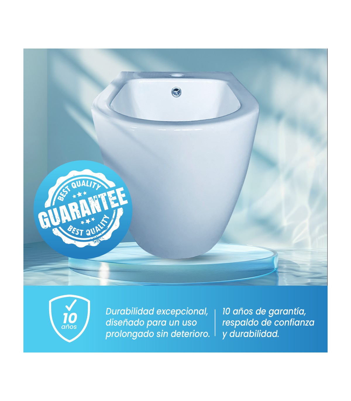 Bidé Roma de cerámica blanca con diseño redondeado, fabricado en porcelana vitrificada de alta calidad. Compacto, resistente y fácil de limpiar. Entrega rápida 48–72 h.