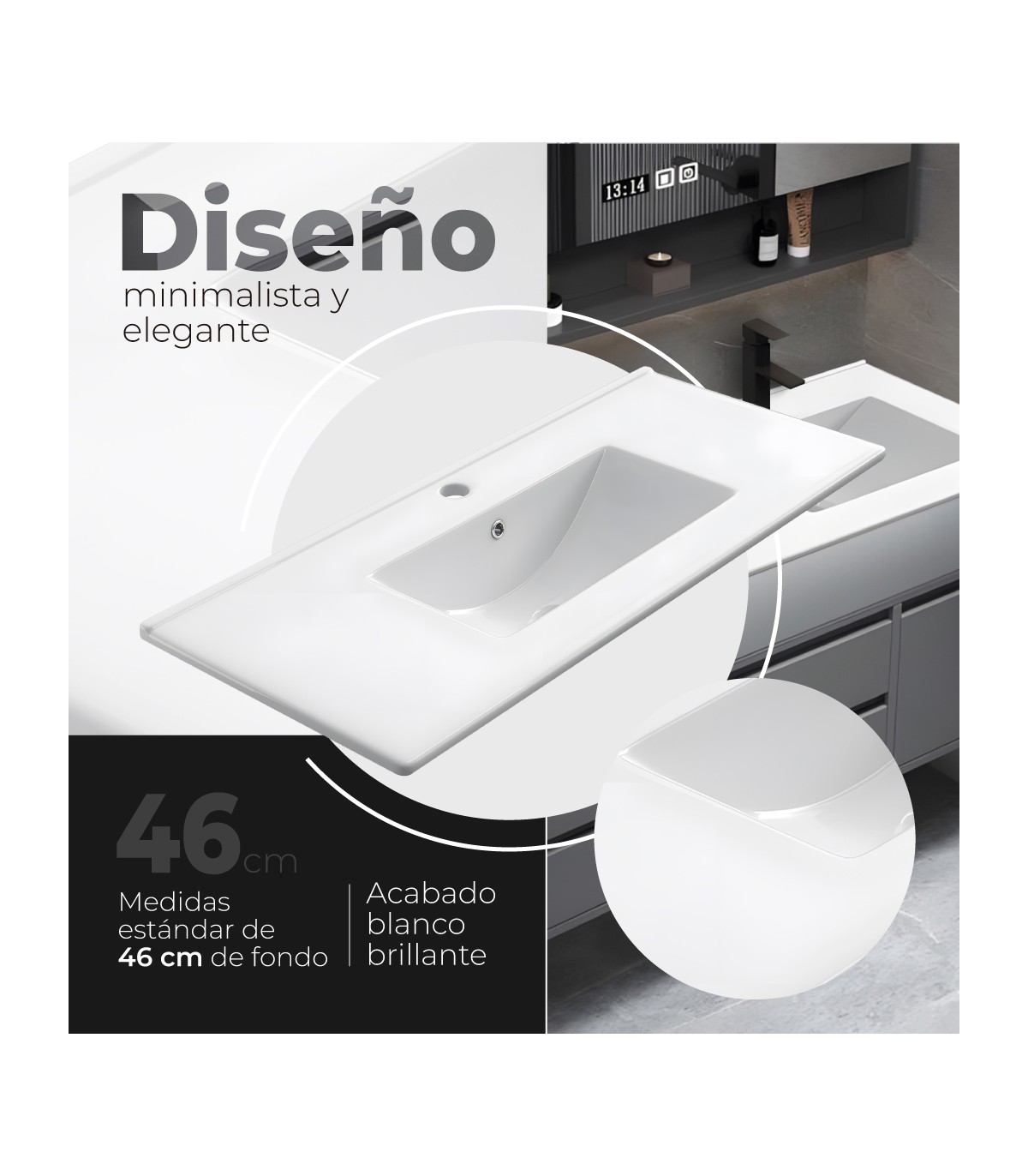 La encimera de porcelana blanca de 100 cm es una solución práctica y elegante para completar el mueble de baño. Fabricada en porcelana vitrificada de alta calidad, ofrece una excelente resistencia al uso diario y un acabado blanco que aporta limpieza visual y combina con cualquier estilo.