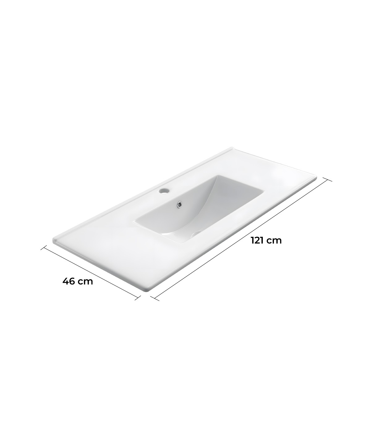 La encimera de porcelana blanca de 120 cm es una solución elegante y funcional para baños amplios o muebles de gran formato. Fabricada en porcelana vitrificada de alta calidad, ofrece una excelente resistencia al uso diario y un acabado blanco que aporta limpieza visual y combina con cualquier estilo.