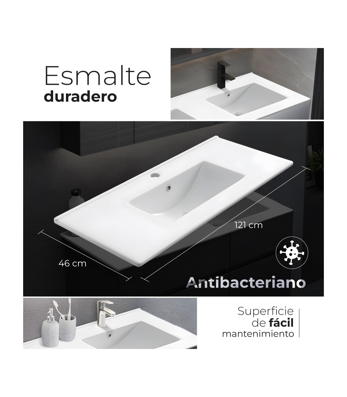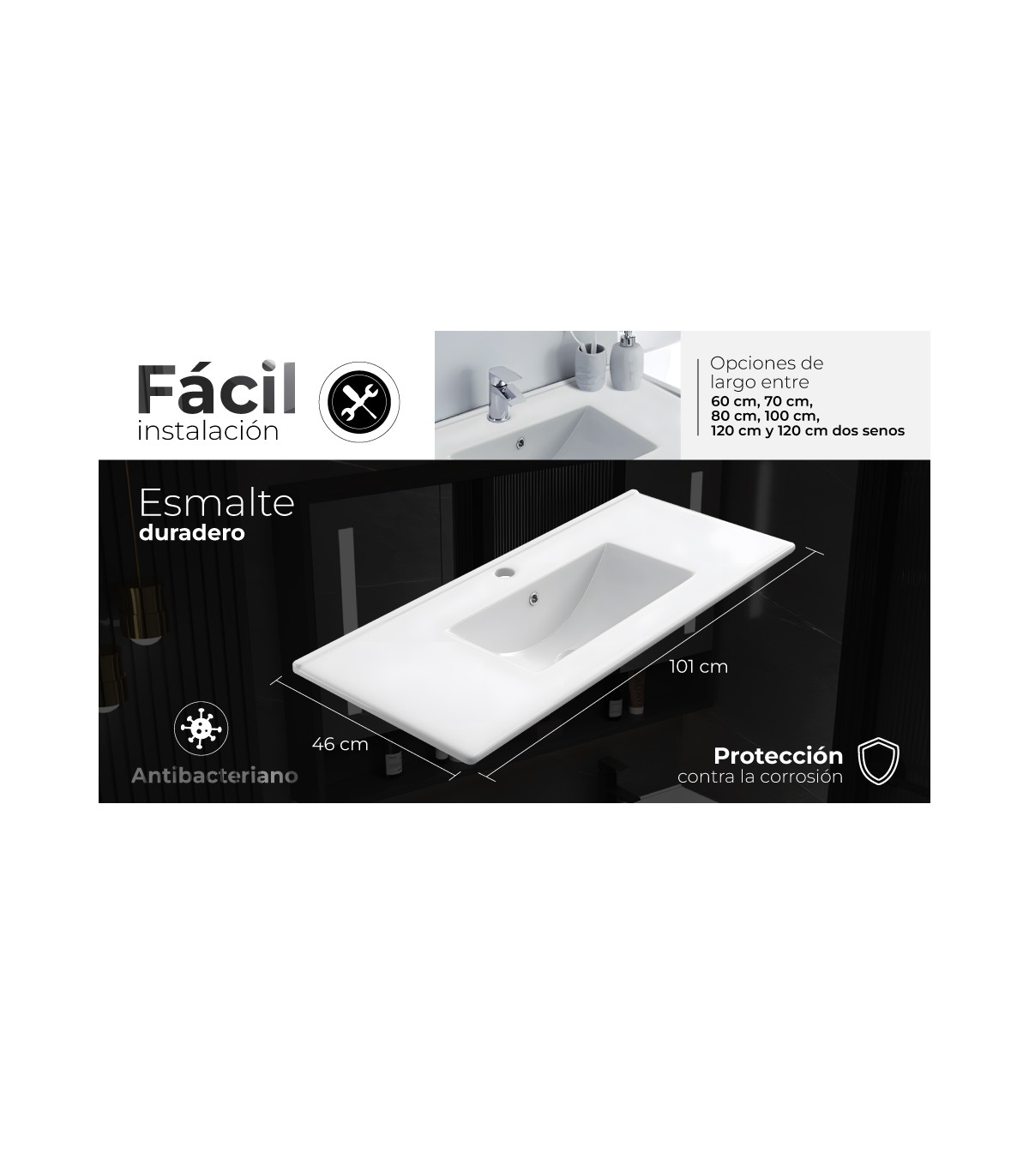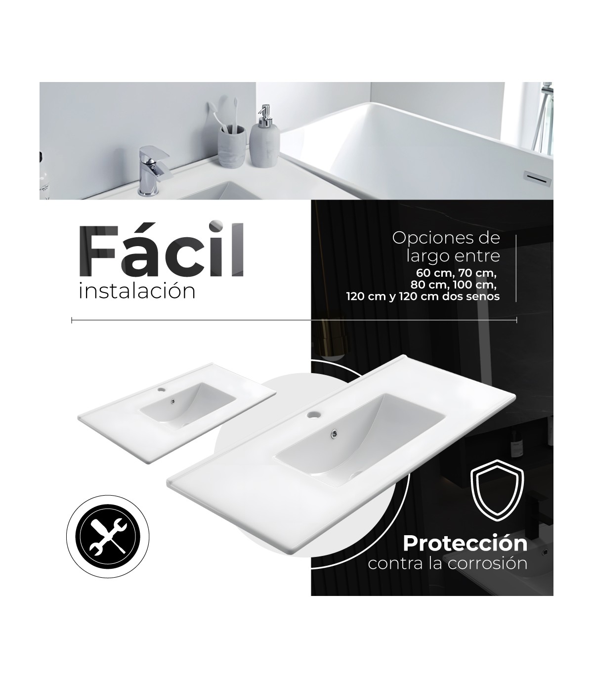 - Compatible con muebles de baño estándar de gran formato