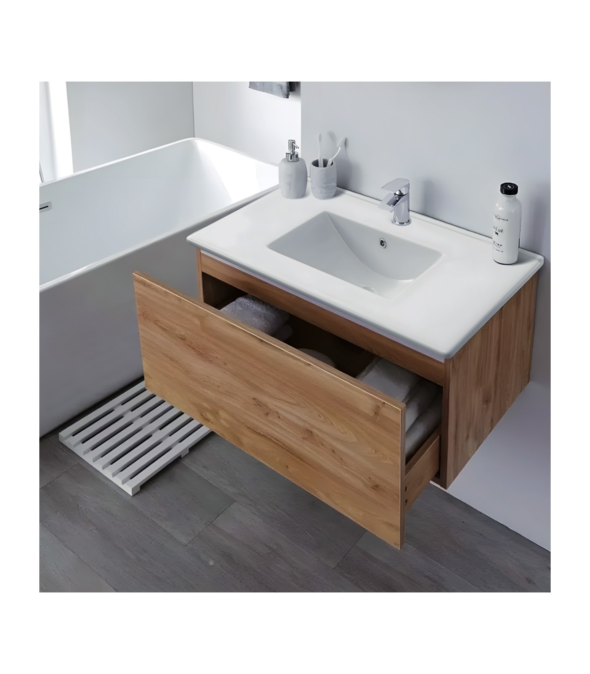 La encimera está diseñada para una instalación sencilla sobre mueble de baño compatible. Su tamaño la hace especialmente adecuada para proyectos de reforma o nuevas instalaciones que requieren mayor superficie funcional.