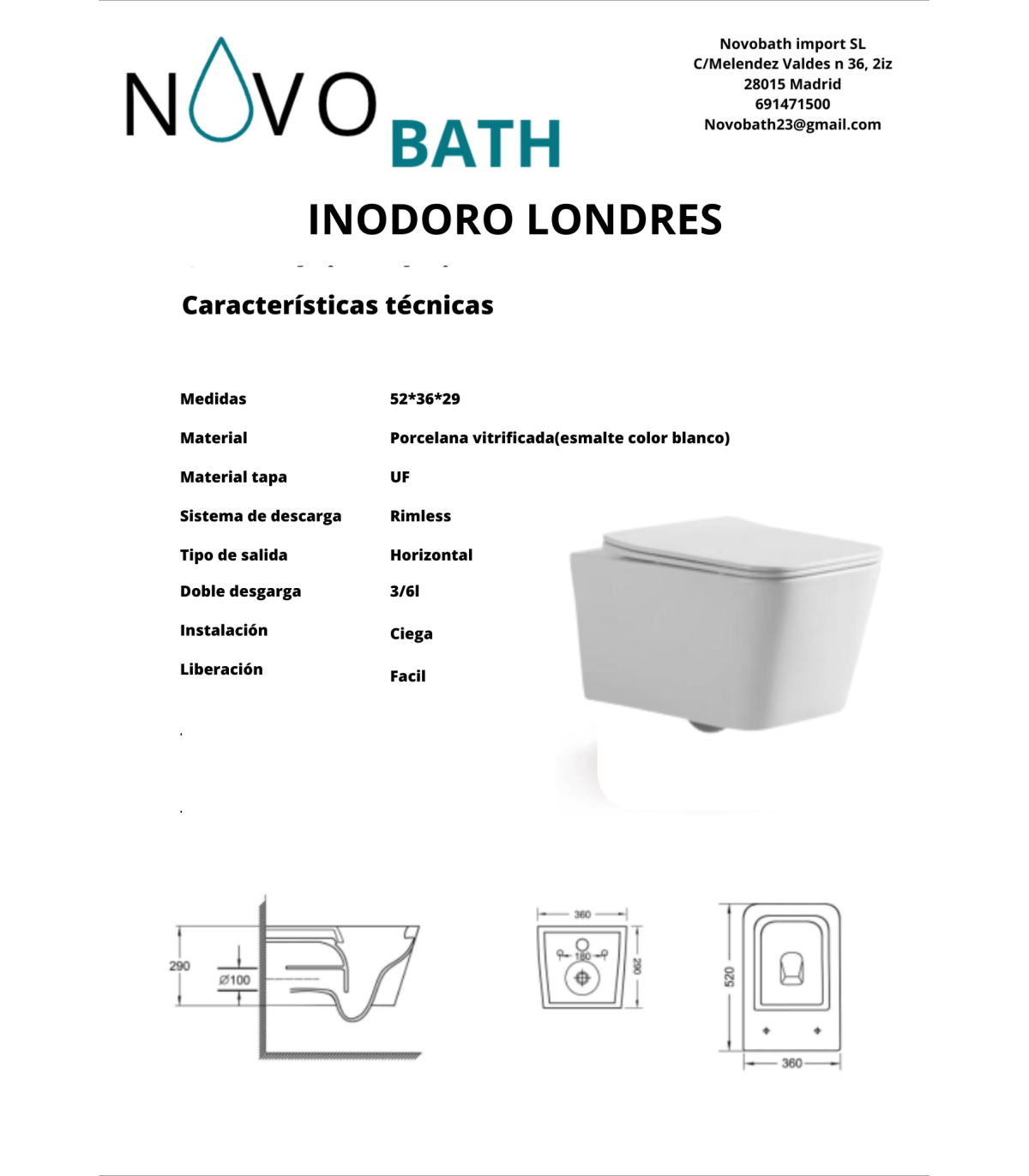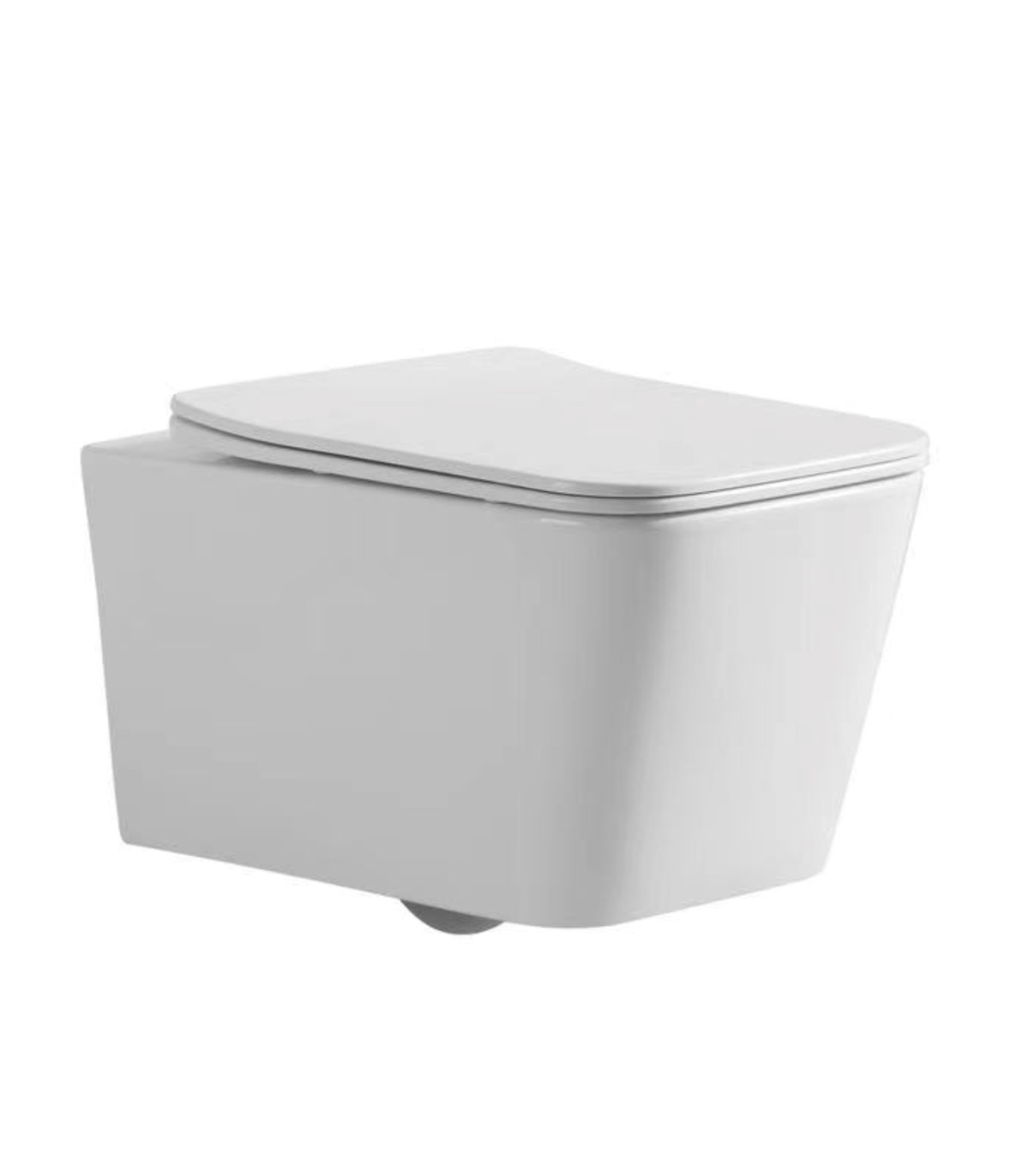 Inodoro suspendido Londres de cerámica blanca con diseño cuadrado, sistema rimless y tapa amortiguada UF. Estilo moderno, fácil limpieza y entrega rápida 48–72 h.