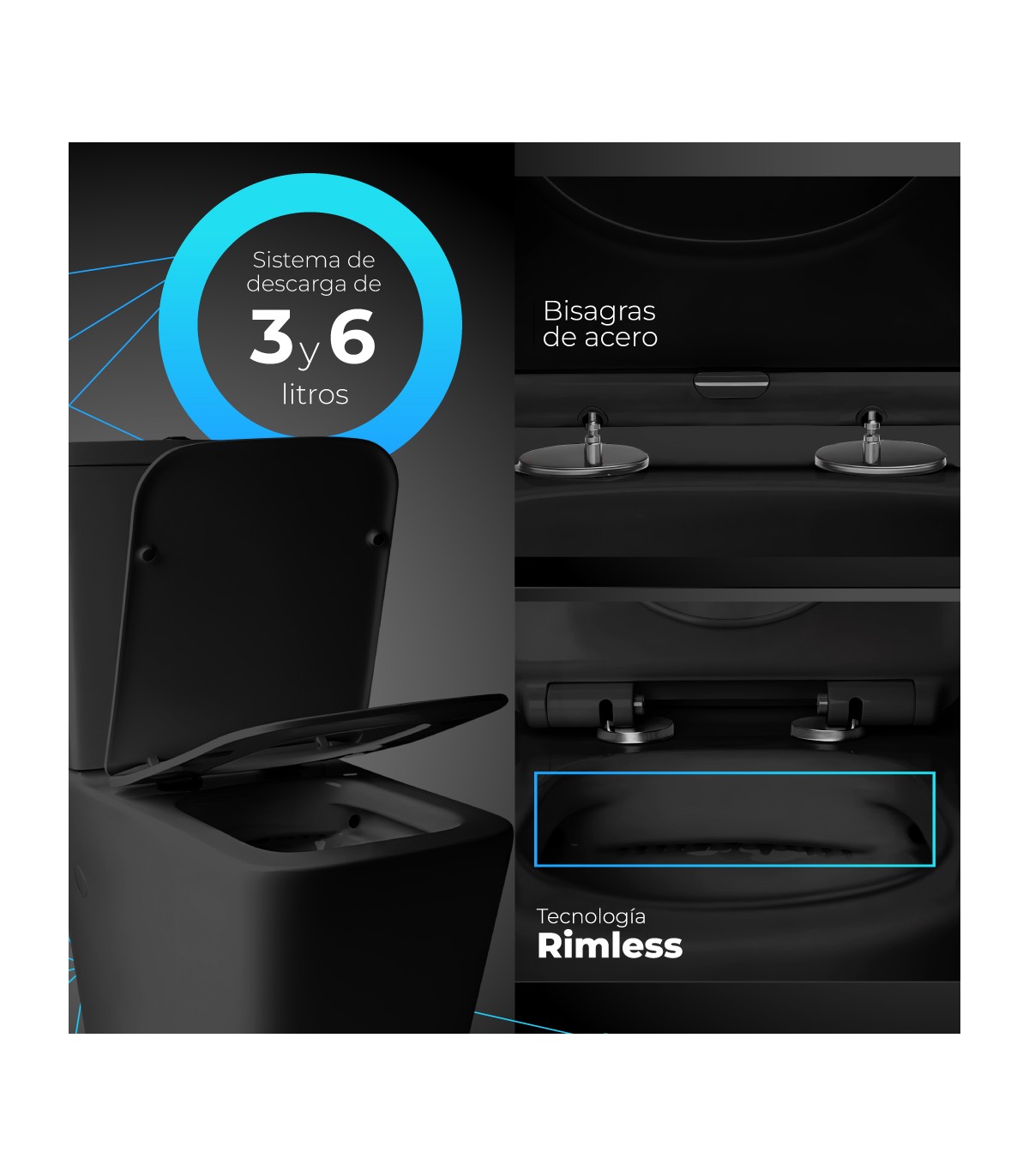 - Sistema rimless para mayor higiene