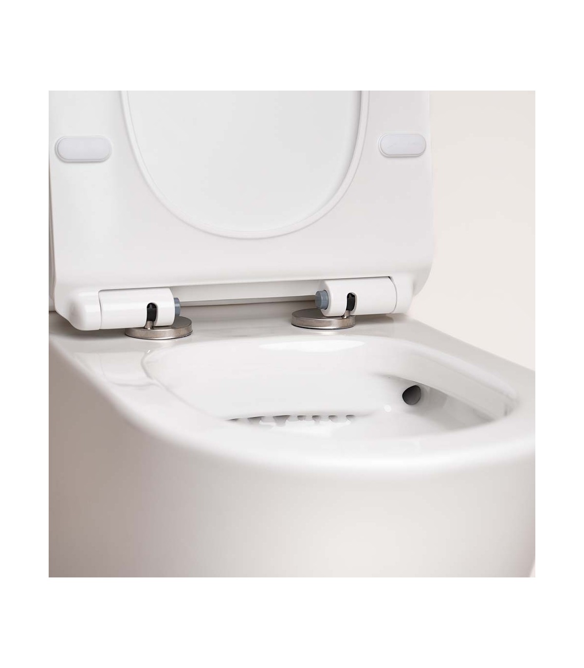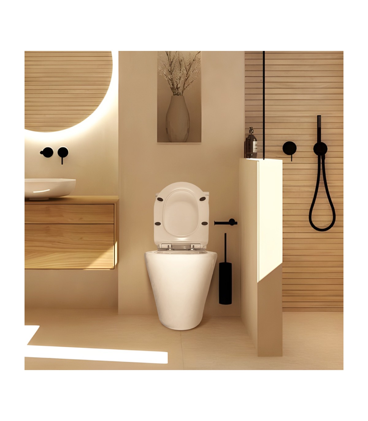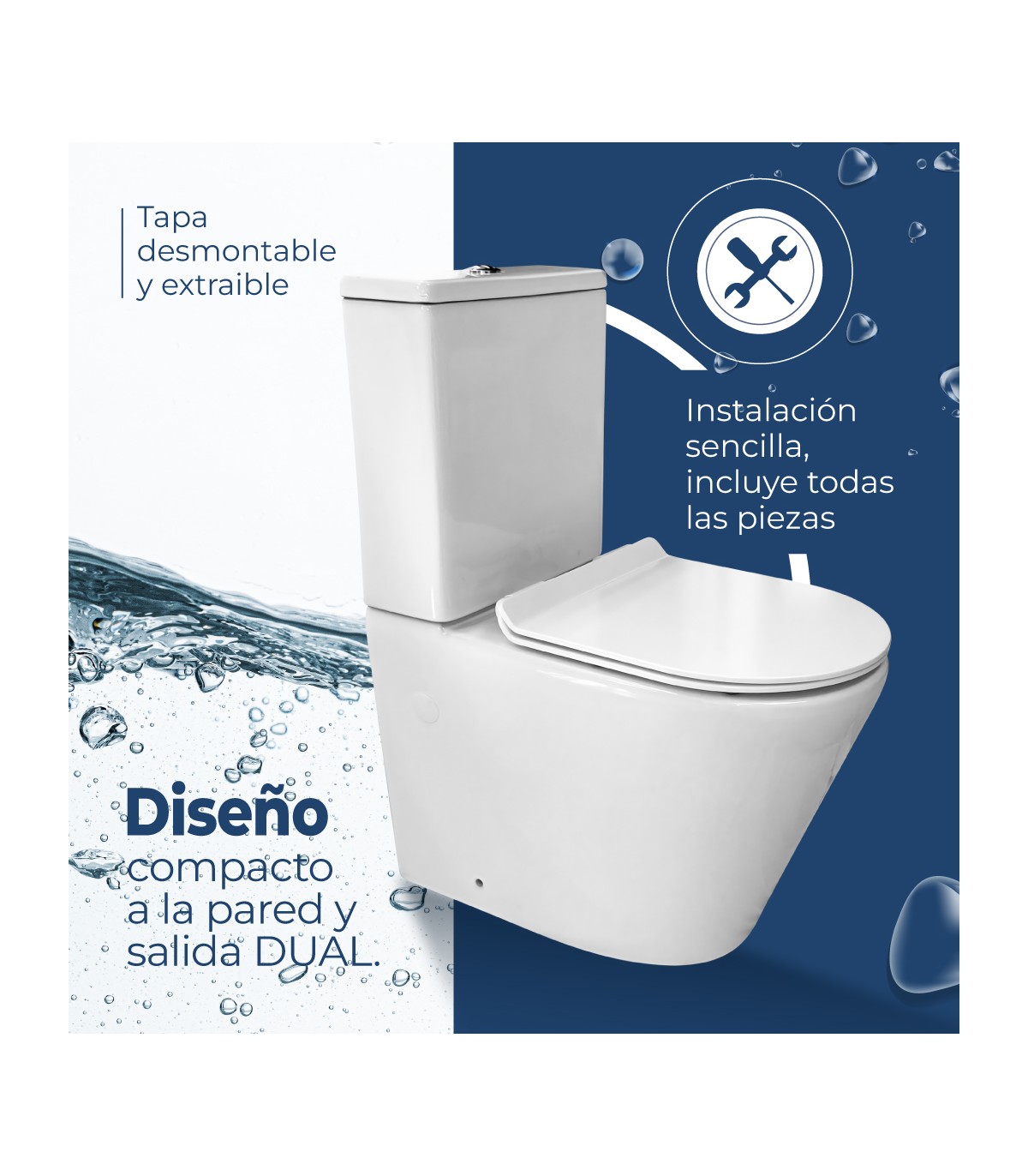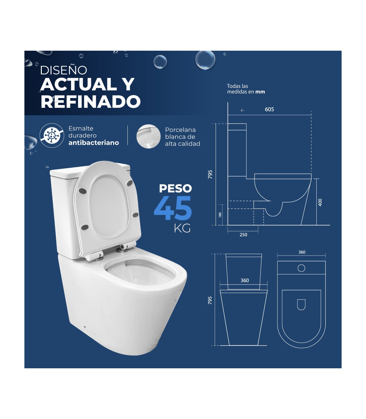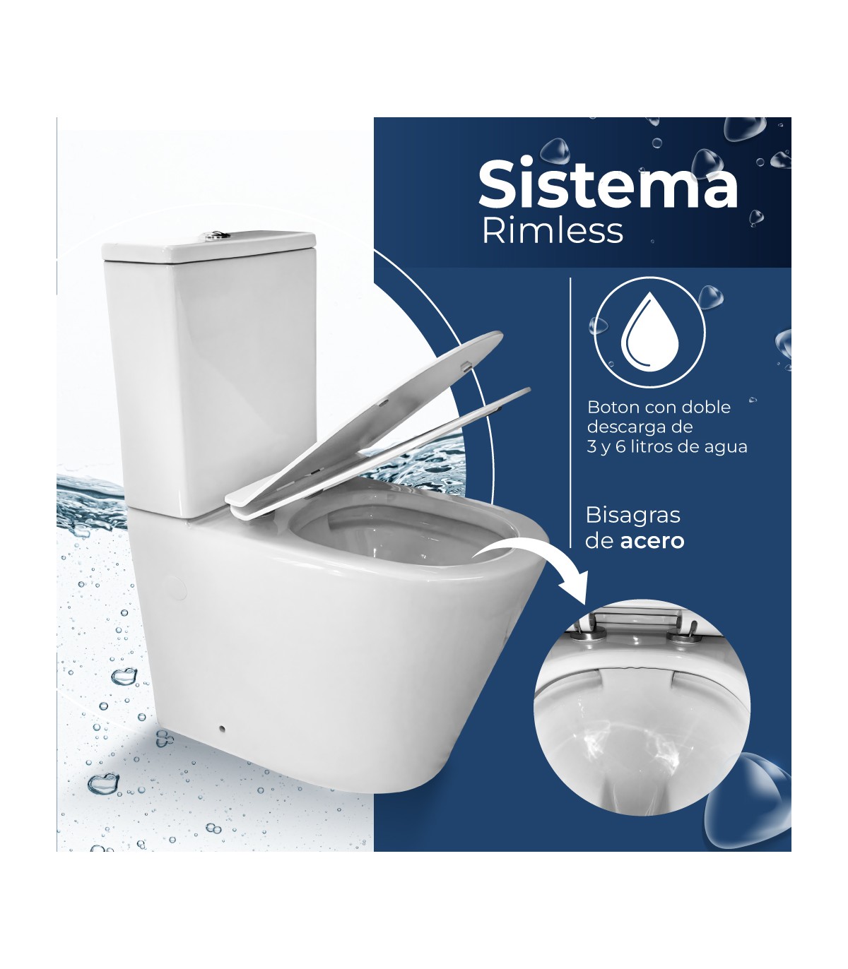 Este modelo incorpora sistema rimless, eliminando la brida interior para mejorar la higiene y facilitar la limpieza diaria. Su diseño redondo y compacto lo convierte en una opción ideal para optimizar el espacio sin renunciar a la comodidad.