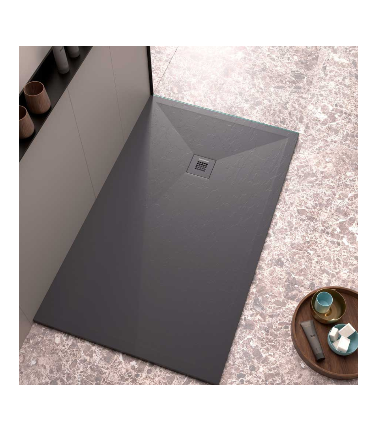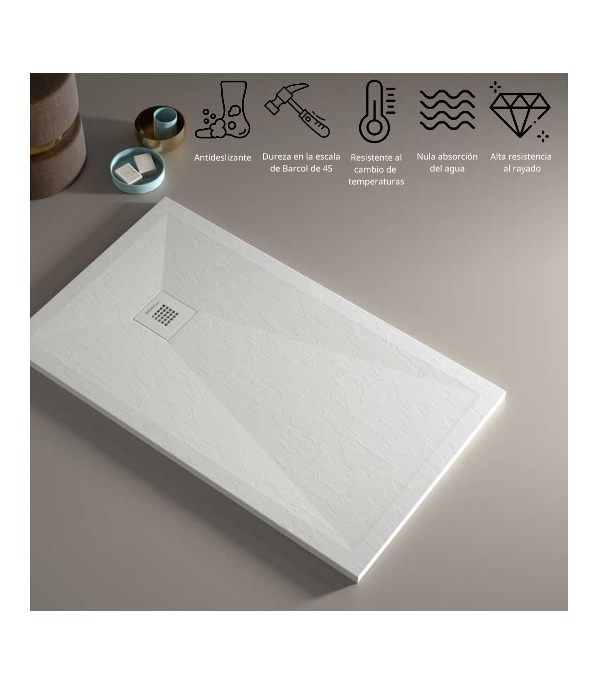 Más información del Plato de ducha de resina rectangular Classic | Textura lisa | Plato de ducha de carga mineral válvula incluida