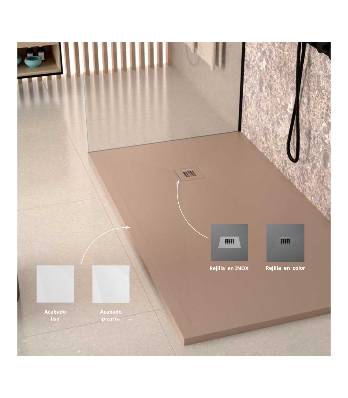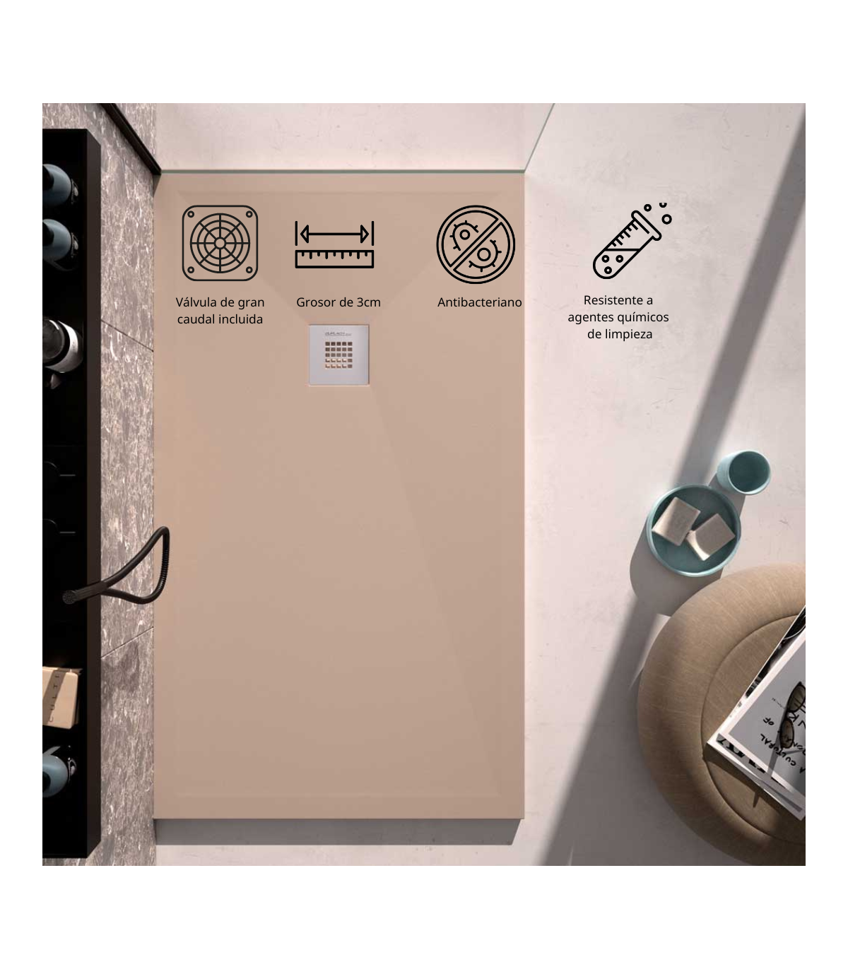 Plato de ducha rectangular de diseño de resina Classic 3cm de grosor. Fabricado en pigmento de masa que no se craquela, con tiene una capa de Gel-Coat antibacteriano. Plato de ducha de fabricación española. Es adaptable gracias a su facilidad de corte. Incluye válvula de gran caudal accesible rejilla a elegir . 5 años de garantía. Medidas en gran formato disponibles.